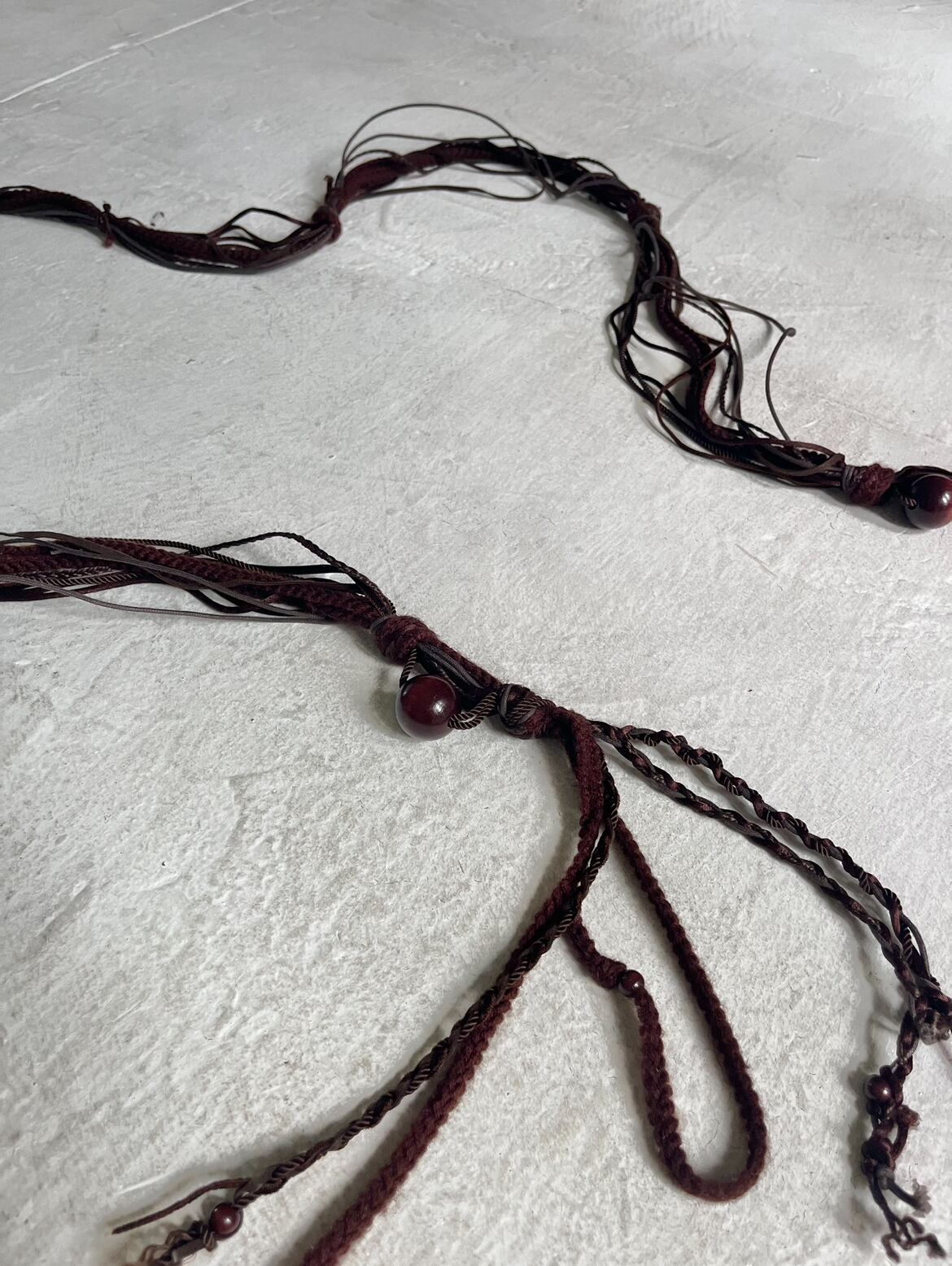 Rather than a conventional structured belt, this piece functions as a decorative accessory, allowing for versatile styling such as wrapping around the waist or layering over garments. The loose, organic form adds movement and character to any outfit.